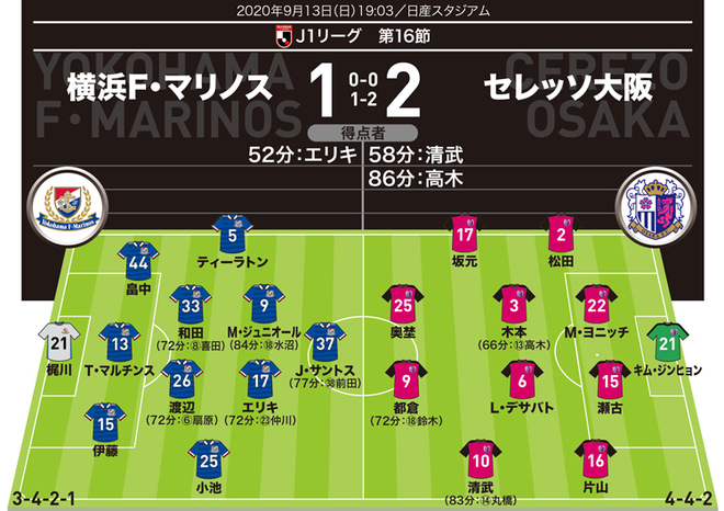 J1採点 寸評 横浜1 2c大阪 清武が異次元の妙技を連発 決勝点演出のドリブラーも高評価 サッカーダイジェストweb